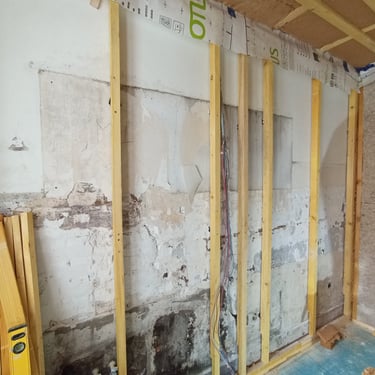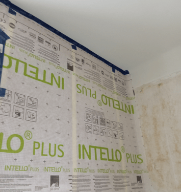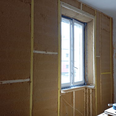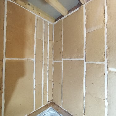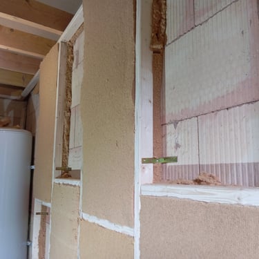 Correction thermique en terre-chanvre 4cm sur 2 murs – Jonction étanchéité à l’air avec murs isolés biofib