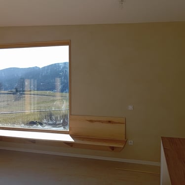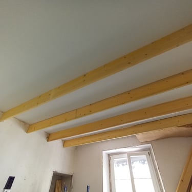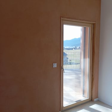 Enduits terre sur murs neufs (sur-élévation) en fermacell, et murs anciens, dans le cadre de la rénovation d’un chalet dans le Vercors