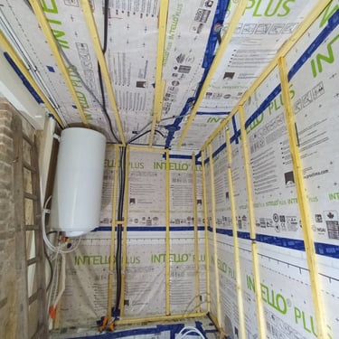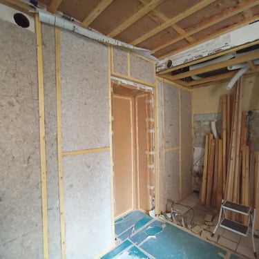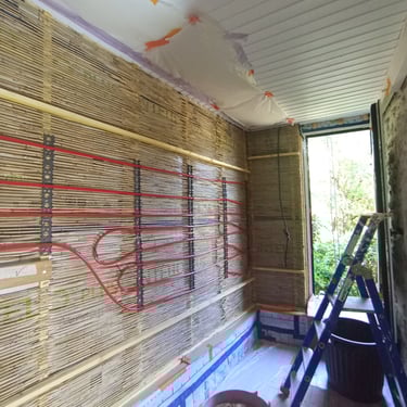 Isolation, mur chauffant et enduits terre pour création salle de bain