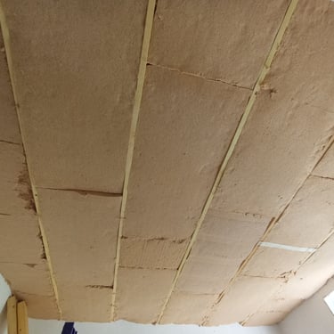Isolation des faux plafonds entre solives – 1 couche de laine de bois Steico Flex 20 cm – Etanchéité à l’air – Contrelattage – Lambris bois