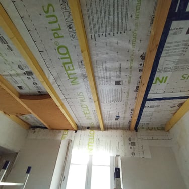 Isolation en laine de bois – ossature bois – étanchéité à l’air – contrelattage avant passage des réseaux - fermacell